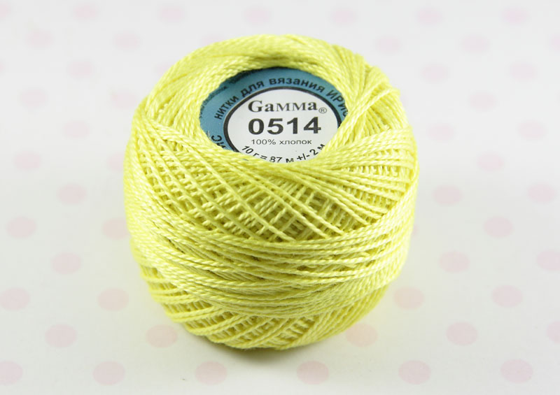 Цена за 1 моточек. Пряжа Ирис Гамма №0514 лимонный 100% хлопок - 10 г. в моточке. Длина нити, м: 87±2 м