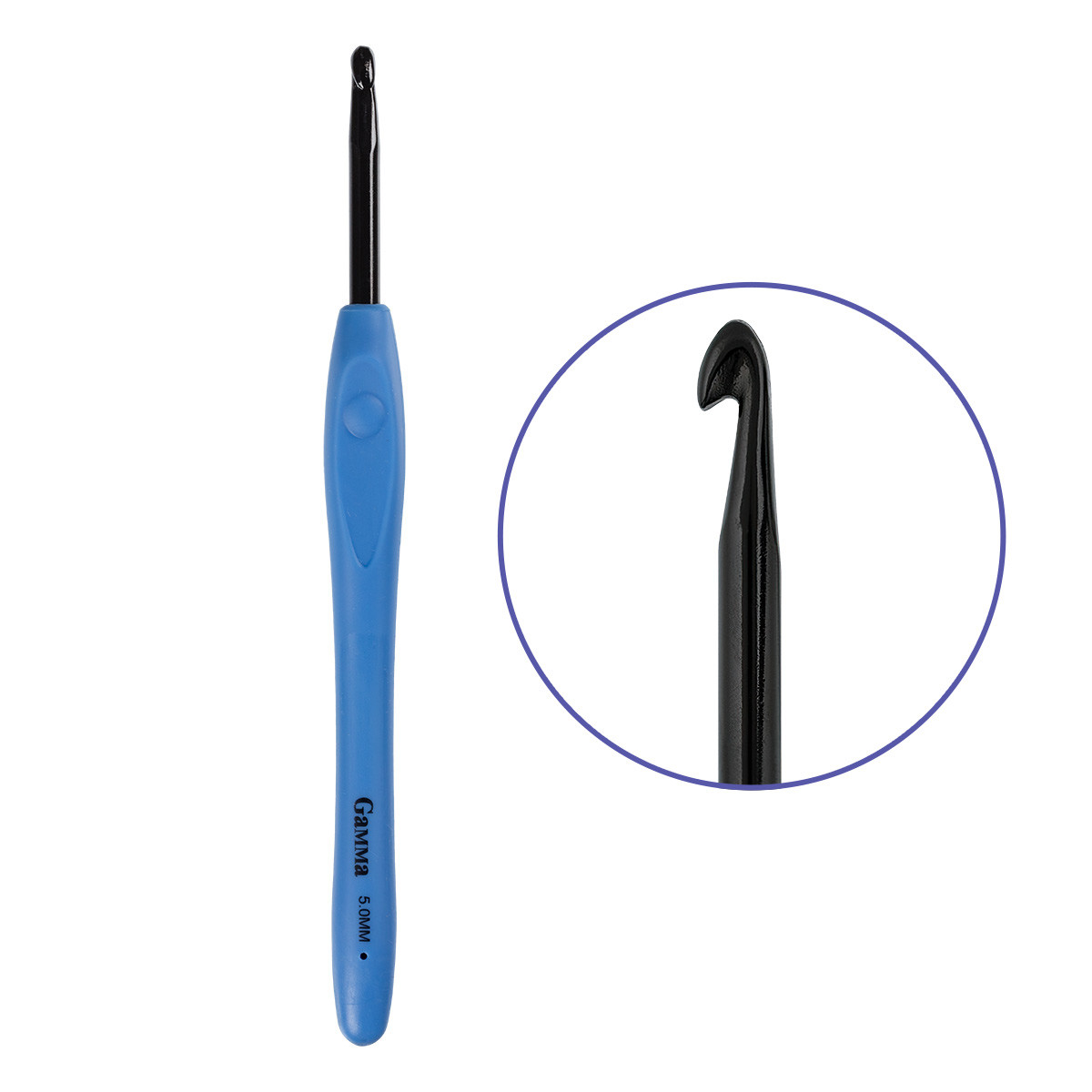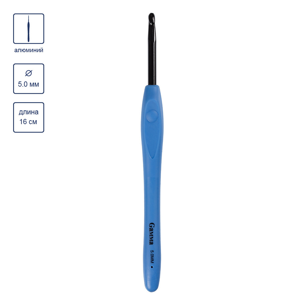 Для вязания " Gamma" RH- BL крючок с прорезин. ручкой алюминий d 5. 0 мм 16 см в блистере .