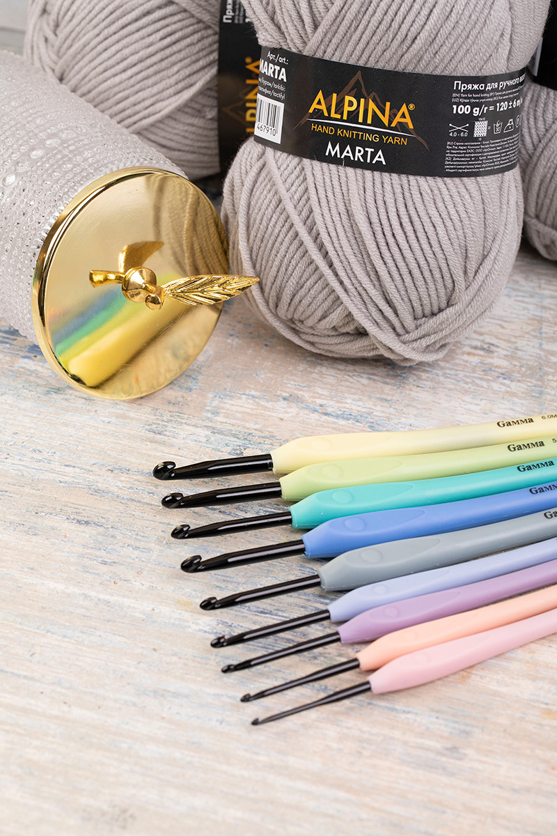 Алюминиевый крючок для вязания " Gamma" RH- BL с прорезиненной ручкой и черным анодированным покрытием идеальное решение для тех, кто любит вязать изделий из белой или светлых оттенков пряжи. Благодаря контрастному цвету головки петля хорошо видна на крючке и быстро привязывается. Гладкая головка крючка гарантирует пряже быстрое и легкое скольжение по его поверхности. Крючок легкий и эргономичный. Он удобно располагается в руке и обеспечивает максимальный комфорт при вязании. Мягкая ручка из эластичного прорезиненного материала не выскальзывает из рук, не давит и не образует мозолей на пальцах. Диаметр - 5. 0 мм. Длина крючка - 16 см. Длина головки - 4. 1 см. Длина ручки - 11. 9 см. Сообщить о неточности в описании