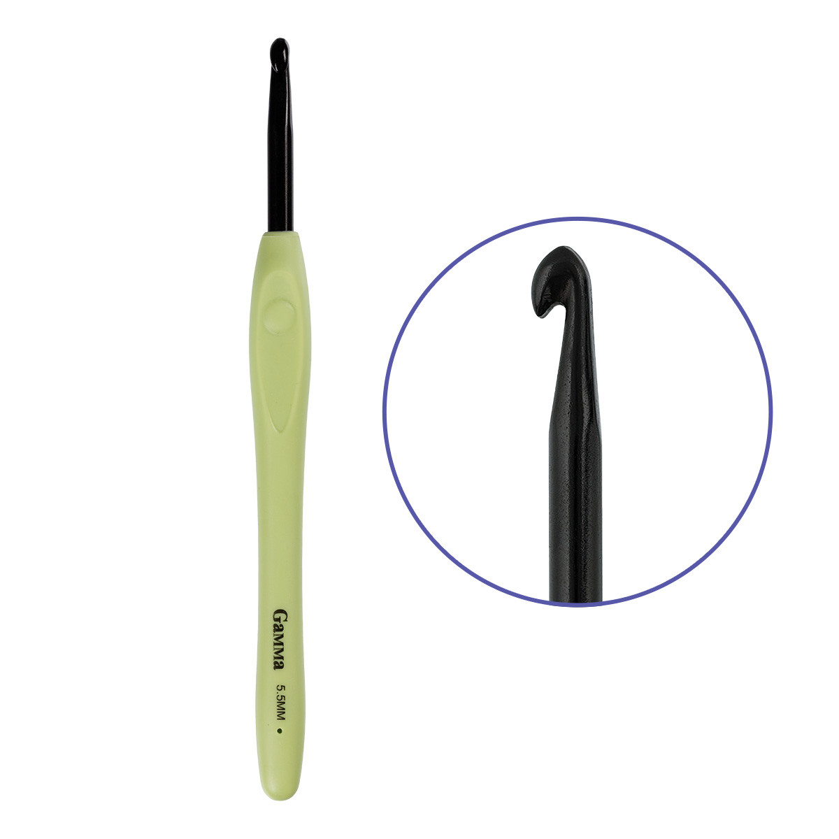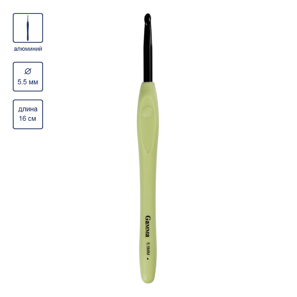 Для вязания " Gamma" RH- BL крючок с прорезин. ручкой алюминий d 5. 5 мм 16 см в блистере .