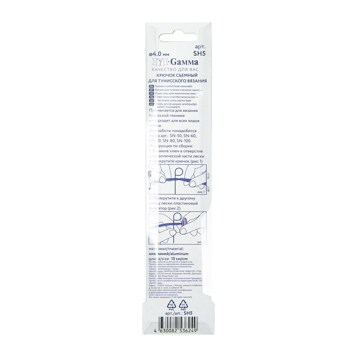 Для вязания " Gamma" SH5 крючок тунисский съемный алюминий d 4. 0 мм 15 см в блистере .