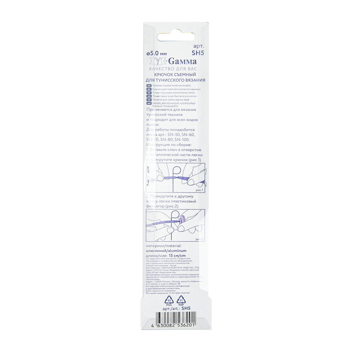 Для вязания " Gamma" SH5 крючок тунисский съемный алюминий d 5. 0 мм 15 см в блистере .