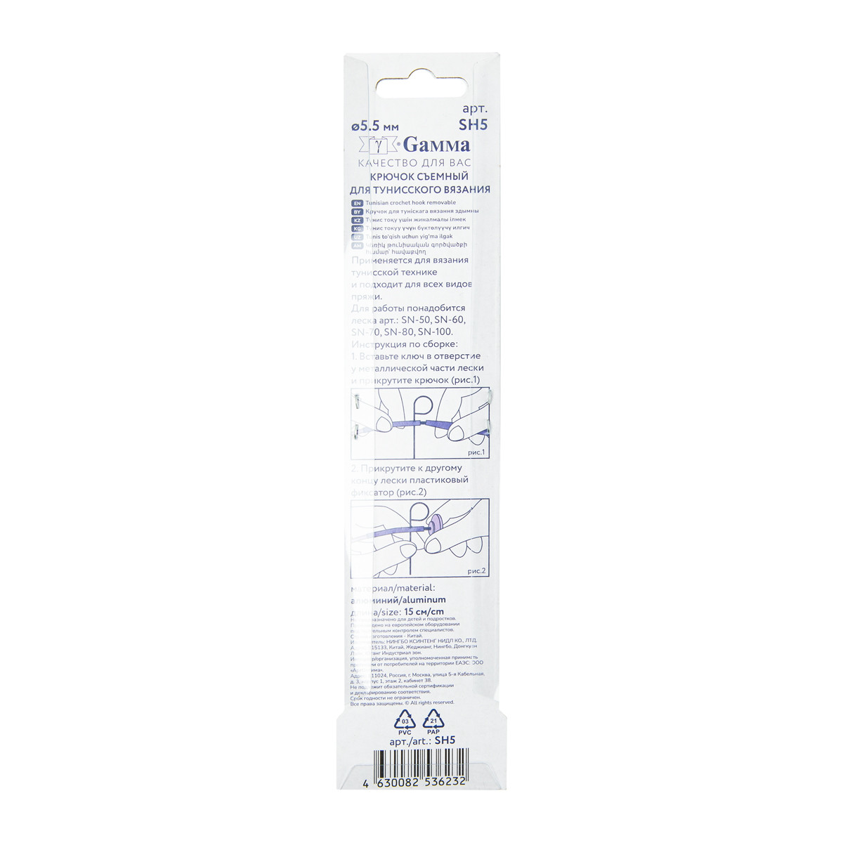 Для вязания " Gamma" SH5 крючок тунисский съемный алюминий d 5. 5 мм 15 см в блистере .