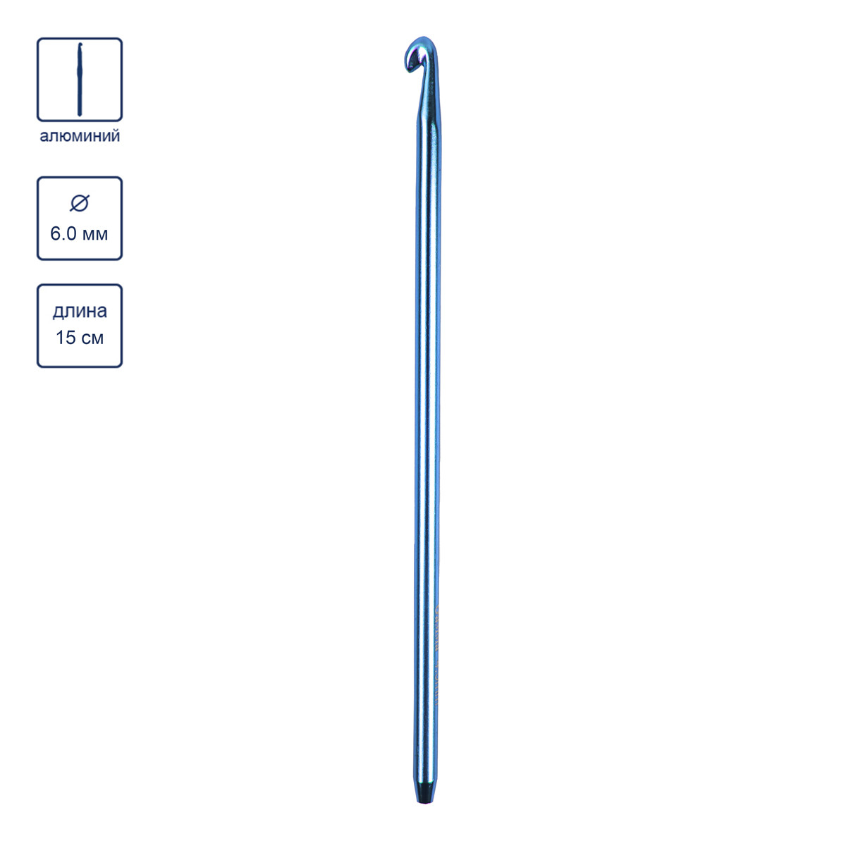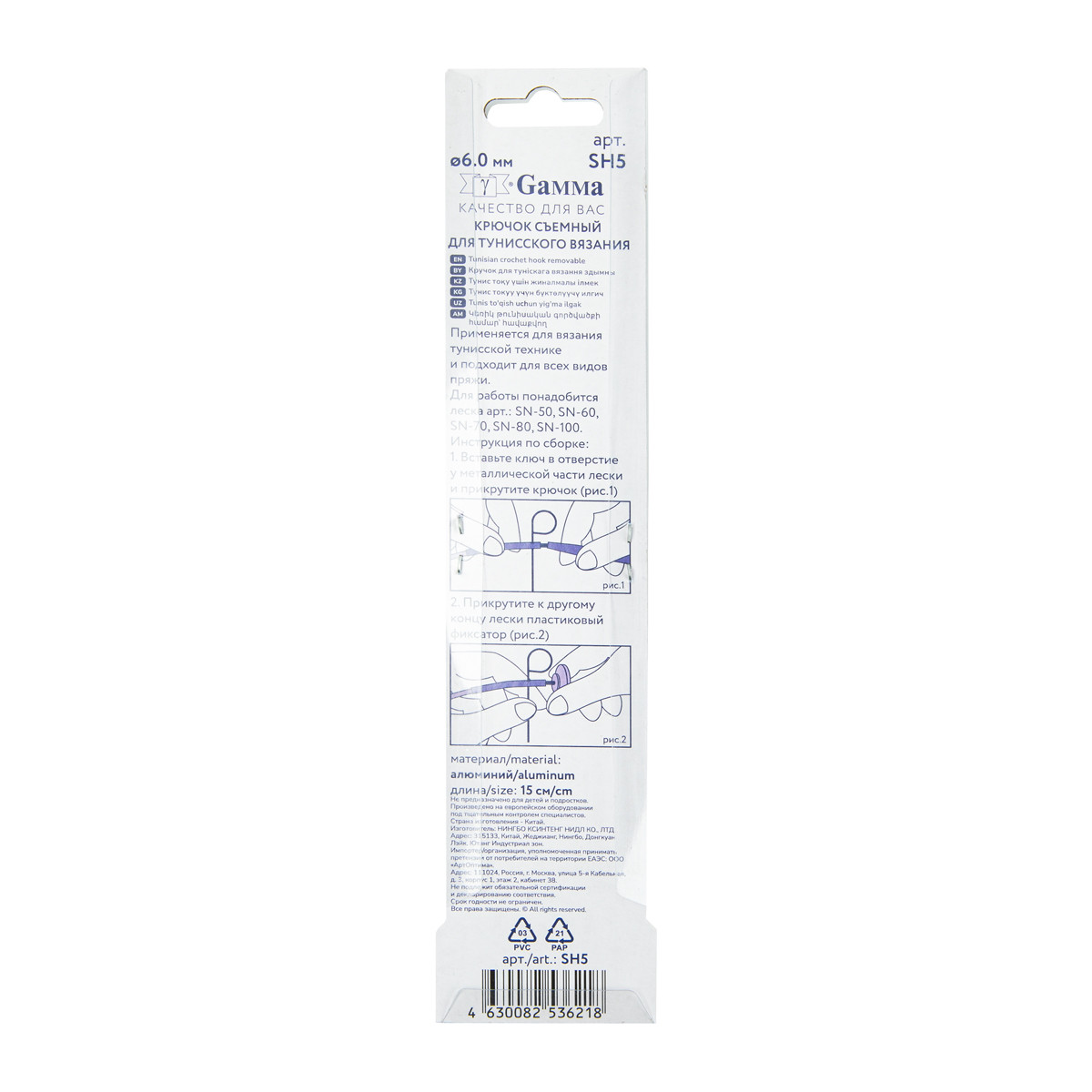 Для вязания " Gamma" SH5 крючок тунисский съемный алюминий d 6. 0 мм 15 см в блистере .