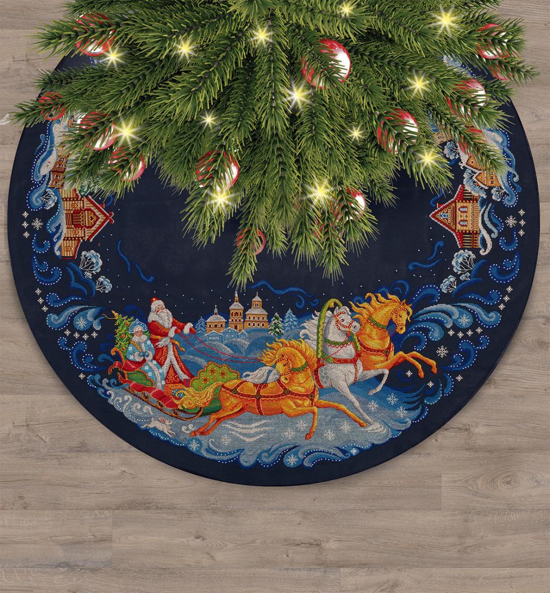 Юбка для новогодней елки стильно декорирует основание, словно окутывая его снегом, и создает в доме атмосферу зимнего праздника. В набор для вышивания PANNA входит: аппертированная канва Gamma Aida 14, хлопчатобумажные нитки мулине Gamma, игла для вышивания Gamma, косая бейка, цветная схема, инструкция по вышиванию и сборке изделия. Юбка для новогодней елки стильно декорирует основание, словно окутывая его снегом, и создает в доме атмосферу зимнего праздника. Сообщить о неточности в описании